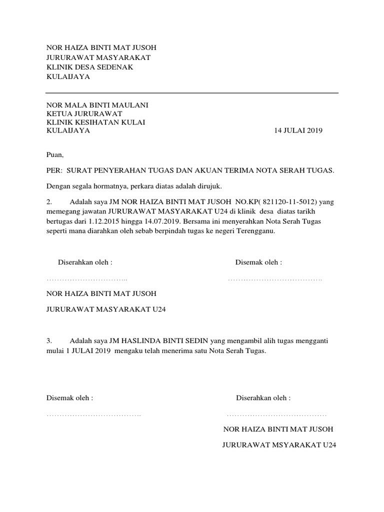 Download Nota Serah Tugas Surat Rayuan Pertukaran Eg Tukar Mykssr Com